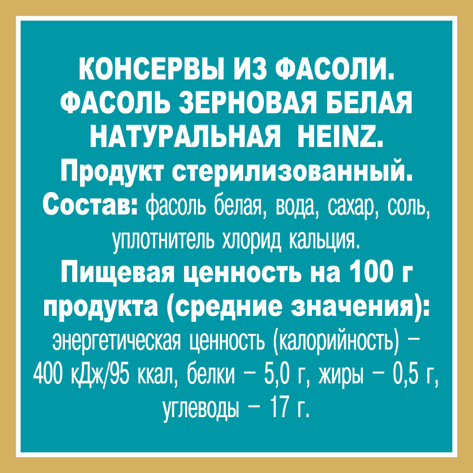 Описание товара:Нежнейшая белая фасоль Heinz богата витаминами и минералами. Полностью готова к употреблению в качестве гарнира или ингредиента супов и салатов. Не содержит искусственных добавок и отвечает высочайшим стандартам качества. .Состав товара:Фасоль зерновая белая, вода, сахар, соль.Меры предосторожности:Хранить в сухих, недоступных для солнечных лучей.