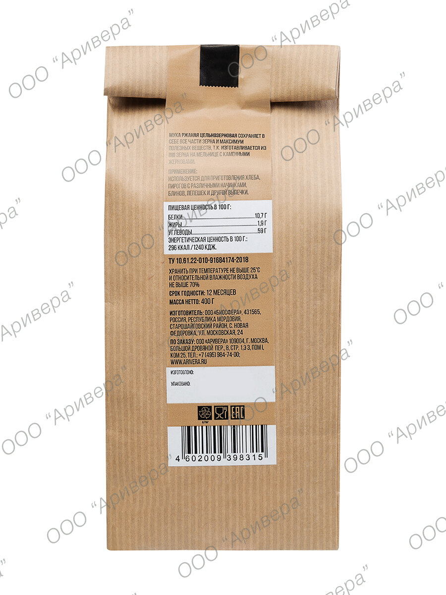 Мука Аривера Ржаная цельнозерная 400г