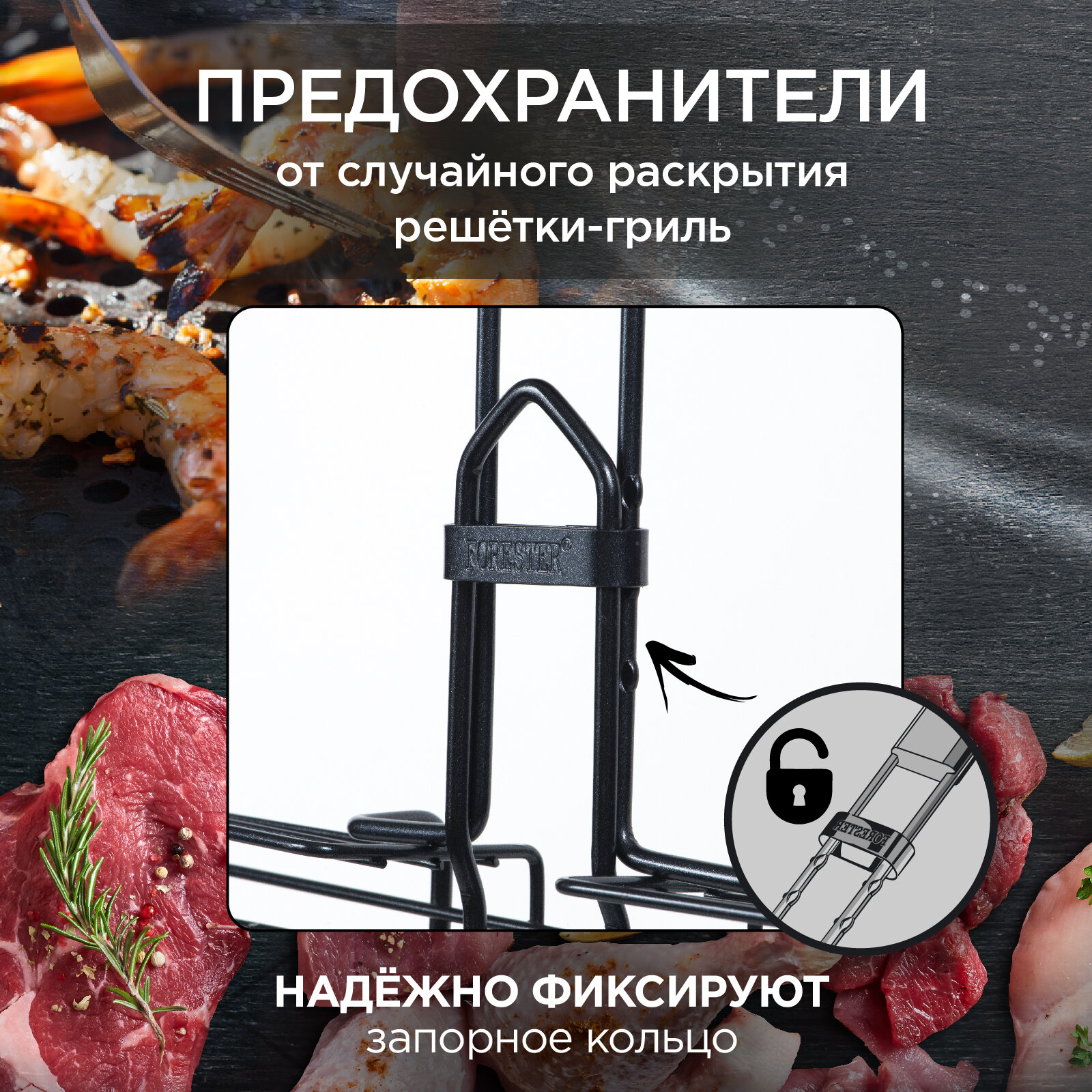 Объемная решетка-гриль с антипригарным покрытием Forester BQ-NS03 для приготовления мяса, рыбы, птицы или овощей-гриль подойдет для большой семьи или компании.