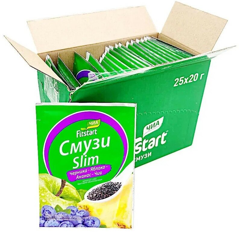 Смузи сухой Fitstart Slim Черника яблоко ананас чиа 20г