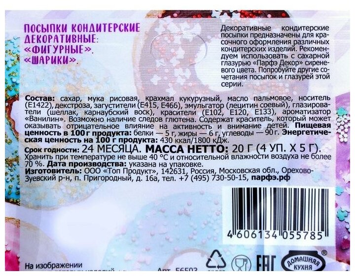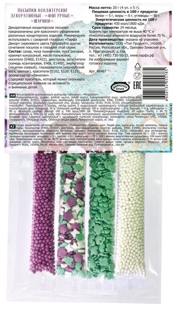 Сервис сравнения цен СкидкаГИД предлагает сравнить цены на товар «Посыпка декоративная Парфэ Сиреневый микс 20г»