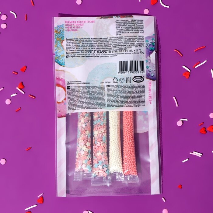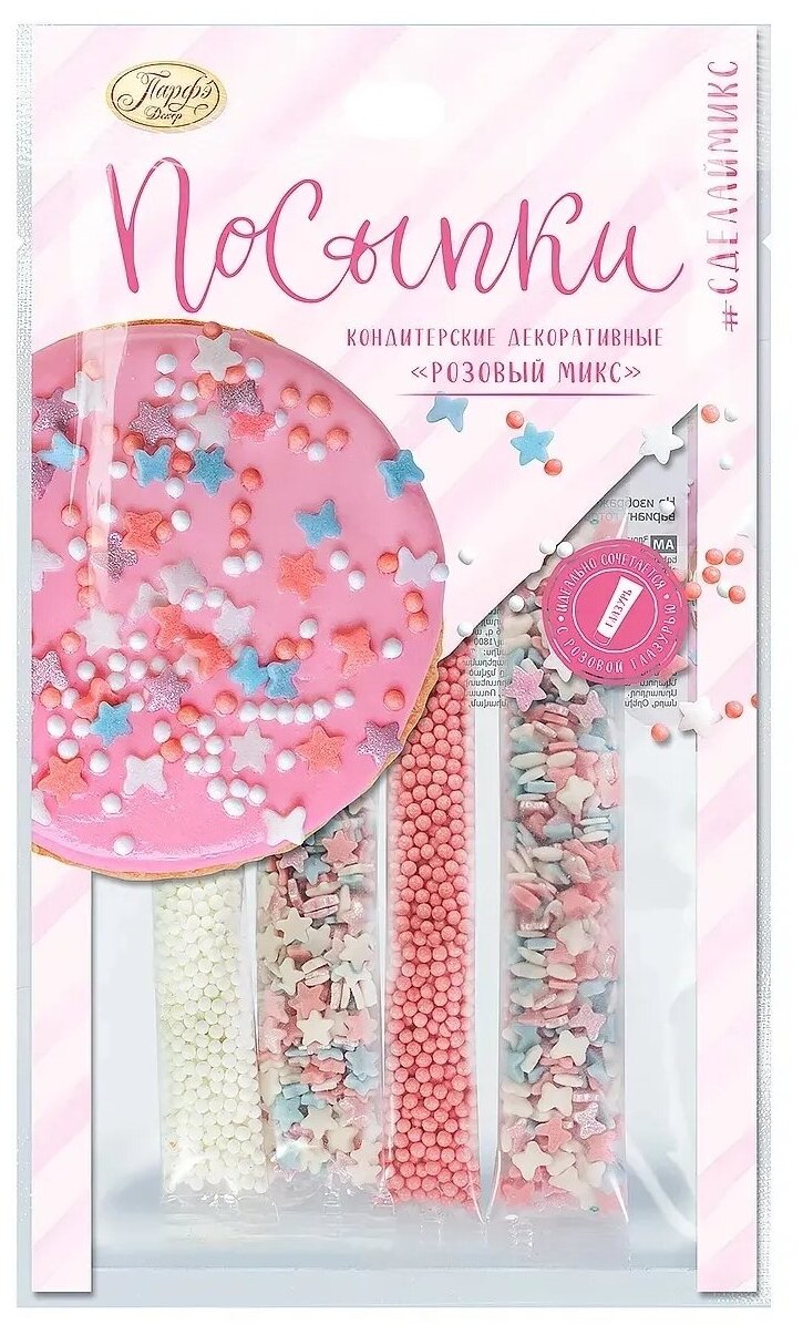 Декоративные кондитерские посыпки предназначены для красочного оформления различных кондитерских изделий. Рекомендуем использовать с сахарной глазурью "Парфэ Декор" розового цвета. Попробуйте другие сочетания посыпок и глазурей этой серии.