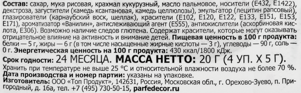 Сервис сравнения цен СкидкаГИД предлагает сравнить цены на товар «Посыпка декоративная Парфэ Брюзовый микс 20г»