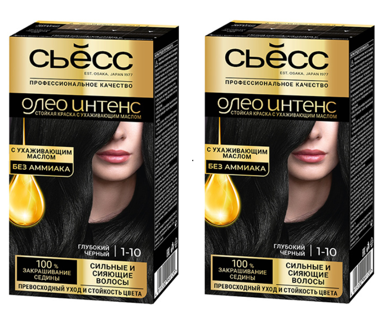 Стойкая краска для волос с маслом-активатором Syoss Oleo Intense Глубокий чёрный 1-10. Превосходный уход & стойкость цвета: Бережная формула без аммиака заботится о волосах в процессе окрашивания и профессионально закрашивает до 100% седины. Ухаживающие масла помогают окрашивающему пигменту проникнуть глубоко в структуру волоса для интенсивного и стойкого результата. Сильные & сияющие здоровьем волосы: Кондиционер содержит ухаживающее аргановое масло, известное тем, что делает волосы более мягкими, шелковистыми и сияющими. Оно интенсивно ухаживает за волосами после окрашивания для того, чтобы Ваши волосы были сильными & сияющими здоровьем. Комплект из 2 упаковок