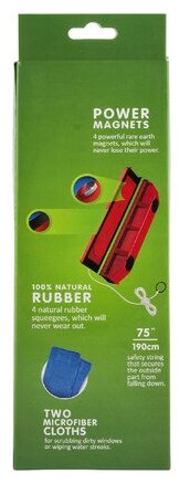 Магнитная щетка Glider работает по простому принципу. Изделие крепится с двух сторон оконного стекла. При движении одной щетки, вторая будет повторять перемещения первой. Это ускорит выполнение домашней работы и сделает ее безопаснее. Для дополнительной подстраховки от падения приспособления есть специальное кольцо на нейлоновом шнурке. Его можно зацепить за оконную ручку или закрепить на запястье. Не работает с двойными и тройными стеклопакетами.Для улучшения результата тканевая поверхность изделия смачивается в моющем растворе или воде. При помощи Glider мытье окон намного упростится, ведь для наведения чистоты стекол будет достаточно вымыть их с одной стороны, а закрепленная щетка повторит все движения хозяйки, приведя в порядок внешнюю сторону окна.Характеристики: Тип товара: щетка Назначение: для мытья окон Форма: прямоугольная Технология: магнитная Материал: пластик АБС Размеры: 15x6x2 см Страна-производитель: КНР Расстояние между щетками от 2 до 8 мм Комплектация: 2 части щетки 2 тканевые салфетки Шнур Инструкция Упаковка: коробка Вся информация на сайте носит справочный характер, создана для удобства наших клиентов и не является публичной офертой, определяемой положениями Статьи 437 Гражданского кодекса РФ.