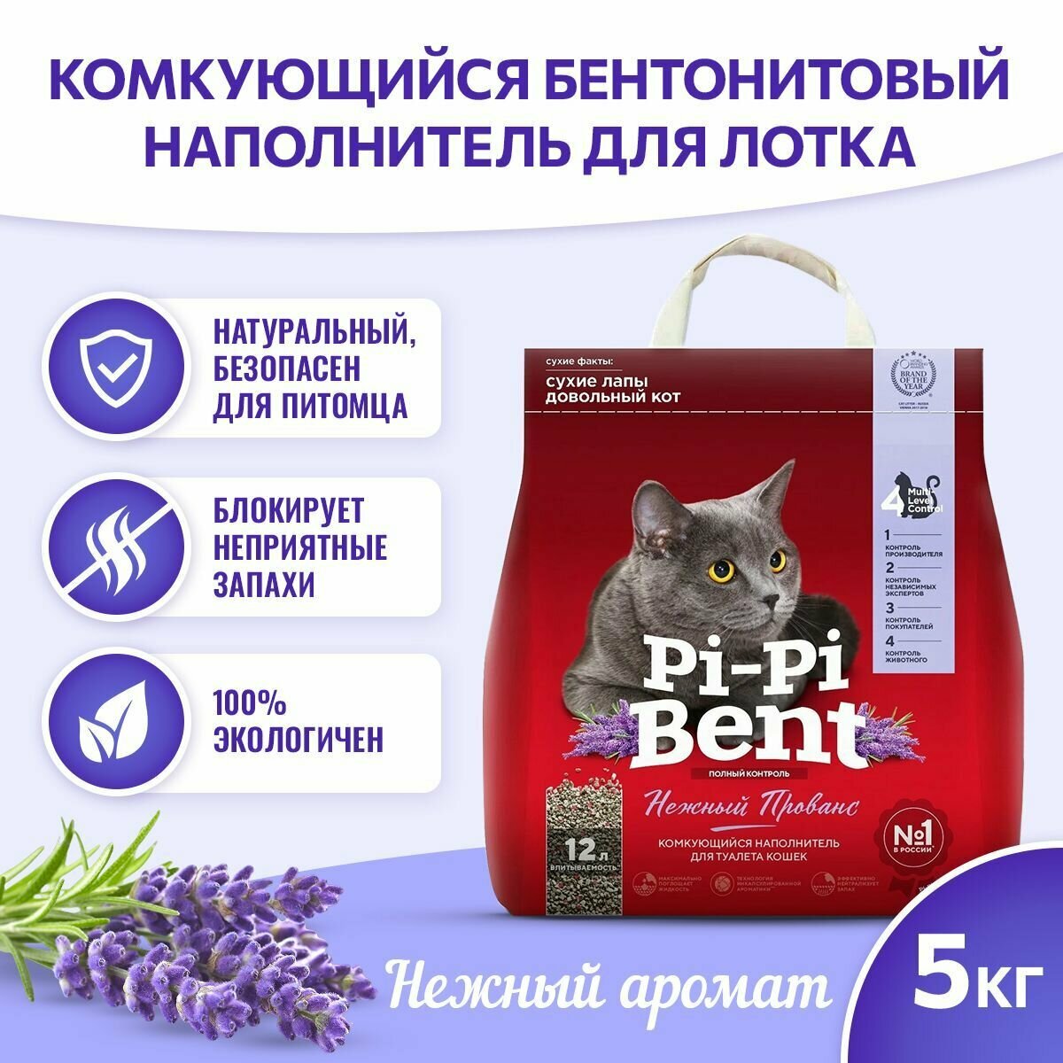 Наполнитель для кошачьего туалета PiPi Bent комкующийся Нежный прованс 12л