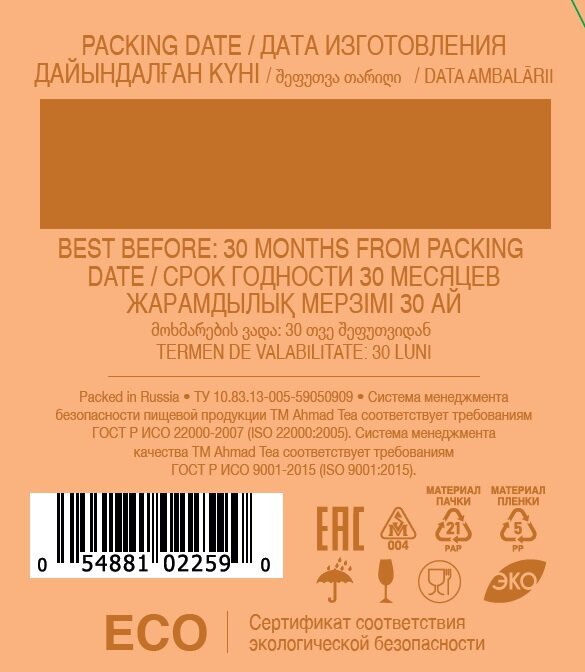 Чай Ahmad Tea черный Магия Манго 25пакx1,5г/уп 2259 Благоухание тропиков с экзотическим вкусом манго в идеальном сочетании с черным чаем лучших сортов. Mango Magic - вкус бодрости и вдохновения, вкус побед и открытий, яркость закатов и рассветов, запах приливов и обаяние ветра перемен. Вид чая пакетированный Тип чая черный Вкус фруктово-ягодный Тип пакетика стандартный Наличие индивидуального пакетика Да Чайных пакетиков в упаковке 25 штук объем 960 куб. см Срок хранения от даты производства (месяцев) 30 Вес, г 38 Тип упаковки картонная Страна происхождения Объединенные Арабские Эмираты