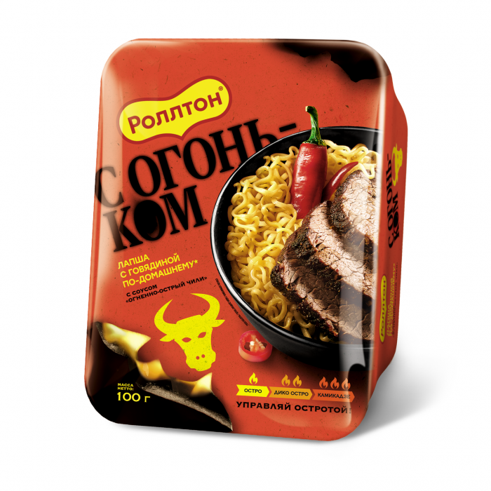 Лапша Роллтон со вкусом говядины с огненно-острым чили 100г