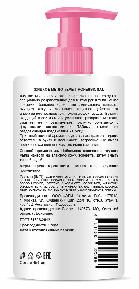 Мыло жидкое EVI professional для профессионального ухода 450мл