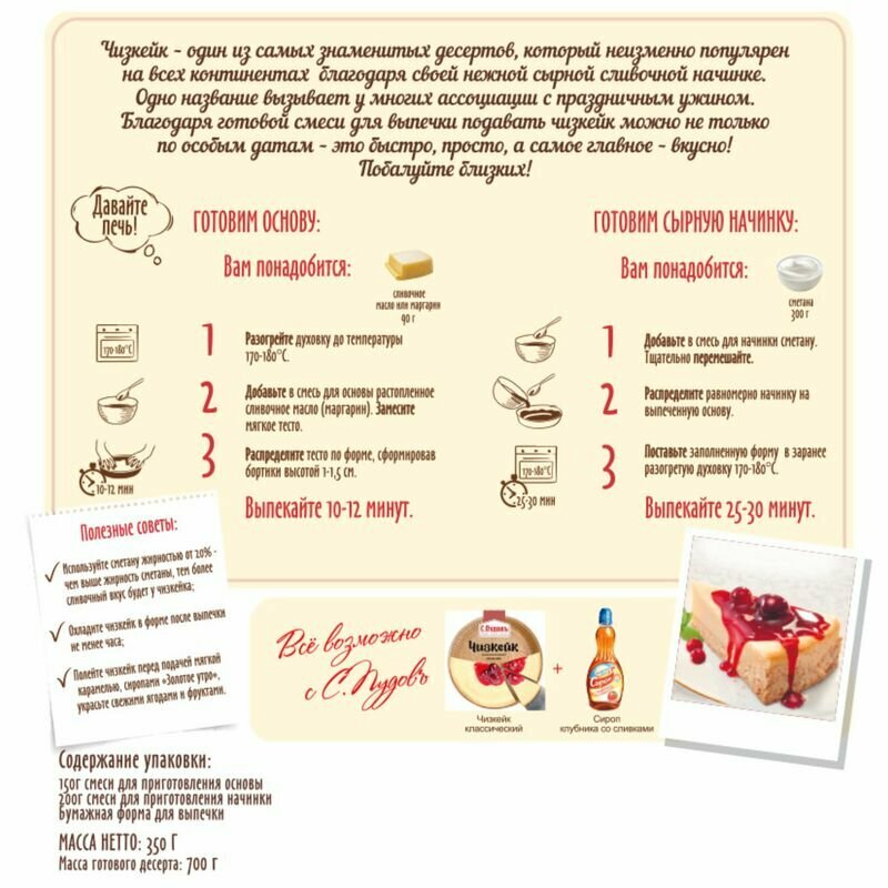 Сервис сравнения цен СкидкаГИД предлагает сравнить цены на товар «Смесь для выпечки С.Пудовъ Чизкейк классический 350г»