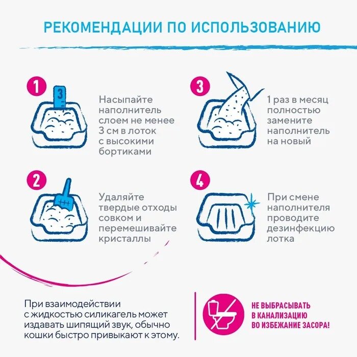 - мелкие гранулы без острых краев, НЕ пылит!!!! Мало прилипает к лапам, хорошо впитывает и удерживает запах, не сильно шуршит, тише чем другие силикагели