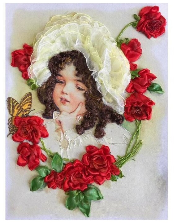 Состав: ткань (габардин) с нанесённым рисунком, ленты атласные разных размеров 100% полиэстер (14 цветов), нитки мулине хлопок, игла, цветная символьная схема, две инструкции (подробная по вышивке набора и подробная по стежкам).