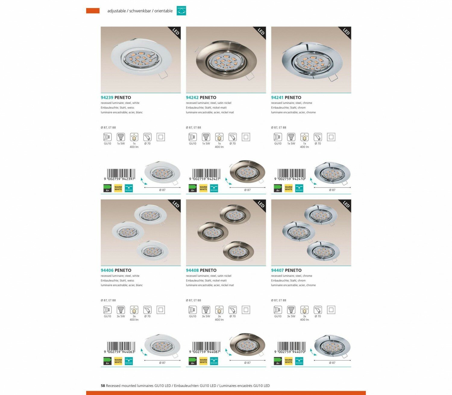 Светильник встраиваемый Eglo Peneto 94406