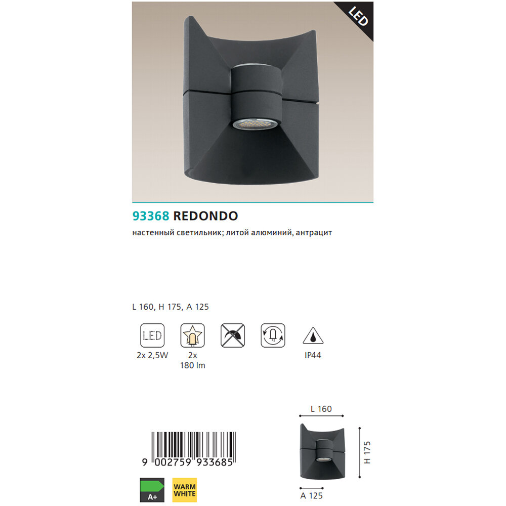 Архитектурная светодиодная подсветка Redondo - продукт известной компании Eglo (Австрия). Имеет максимальную мощность 5 Вт, освещает площадь до 1 кв. м. Отлично подойдет для таких мест, как сад, фасад. Впишется в интерьеры следующих стилей: минимализм, хай-тек.