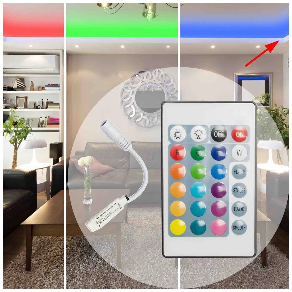 Мини-контроллер RGB предназначен для управления многоцветной светодиодной лентой RGB. С помощью него можно регулировать цветовые оттенки, включать или выключать светодиодную ленту, выбирать различные динамические режимы свечения светодиодной ленты, регулировать яркость, а также подобрать комфортную скорость смены цветов в динамических режимах. Еще контроллер позволит отрегулировать свечение, создать атмосферу релакса и расслабления, или выбрать фантастическую игру цвета, чтобы удивить близких и друзей. Одно из преимуществ данного изделия заключается в возможности работать как от напряжения 12 В, так и 24 В, а значит его можно использовать со светодиодными лентами с соответствующим напряжением. Важно отметить, что в зависимости от того с каким напряжением предстоит работать устройству, будет отличаться и максимальная мощность нагрузки, которую можно подключить к нему. Так, при напряжении 12 В максимальная нагрузка будет равна 72 Вт, а при напряжении 24 В уже 144 Вт. Это значит, что к данному изделию вы можете подключить в два раза больше светодиодной ленты 24 В. Контроллер укомплектован дистанционным пультом управления, передающим сигнал по инфракрасному каналу. Управление осуществляется с помощью кнопок, расположенных на лицевой стороне пульта, который работает от 1-й батарейки CR2025. Накладной корпус контроллера, выполненный из пластика , благодаря миниатюрному размеру 40х12х5 мм, позволяет разместить его даже в профиле для светодиодной ленты. Степень защиты от пыли и влаги соответствует стандарту IP33, что подразумевает установку устройства в сухом, проветриваемом помещении.