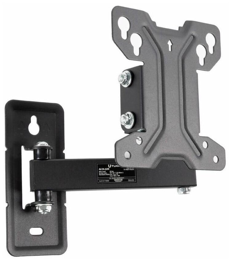 Прочный и надежный кронштейн TUAREX обладает исключительной маневренностью и стильным дизайном. Конструкция выполнена из стали, поддерживает телевизоры с диагональю от 10 до 27 дюймов (25-69 см) и максимальной нагрузкой до 20 кг.Используемые специальные шайбы с низким коэффициентом трения в шарнирном соединении позволяют плавно регулировать каждое колено, поворачивая экран на 180°. Регулировка выноса от стены на минимально возможное расстояние до 60 мм от стены или же на максимально возможное расстояние от стены до 280 мм. Также кронштейн можно наклонять вверх и вниз на +-15 градусов.Легкий монтаж за счет съемной монтажной пластины, пошаговая инструкция и полный набор крепежный деталей.Максимальные посадочные отверстия по горизонтали - 100 мм, по вертикали - 100 мм. Поддерживаемые стандарты VESA: 75 x 75, 100 x 100.