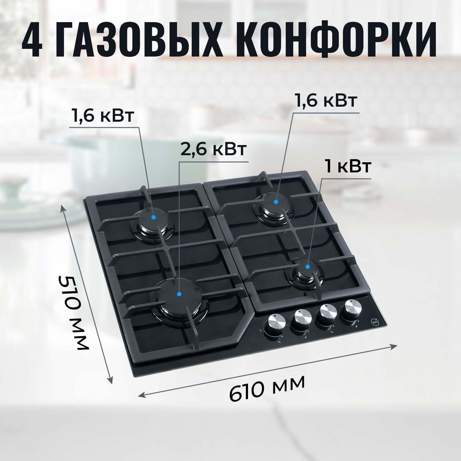 Количество конфорок | 4; общая мощность:6800 Вт |