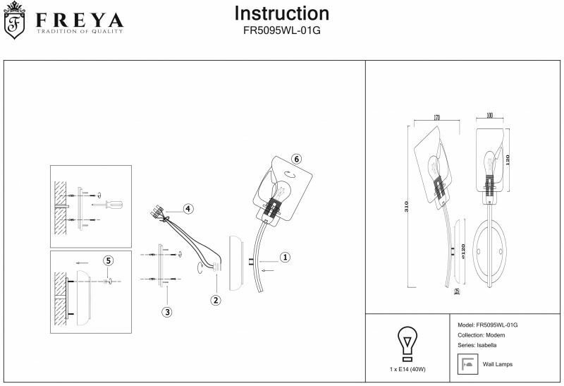 Бра Isabella FR5095WL-01G - продукт известной компании Freya (Германия). Имеет максимальную мощность 40 Вт, освещает площадь до 2 кв. м. Отлично подойдет для таких мест, как гостиная, прихожая и коридор, спальня. Впишется в интерьеры следующих стилей: модерн.