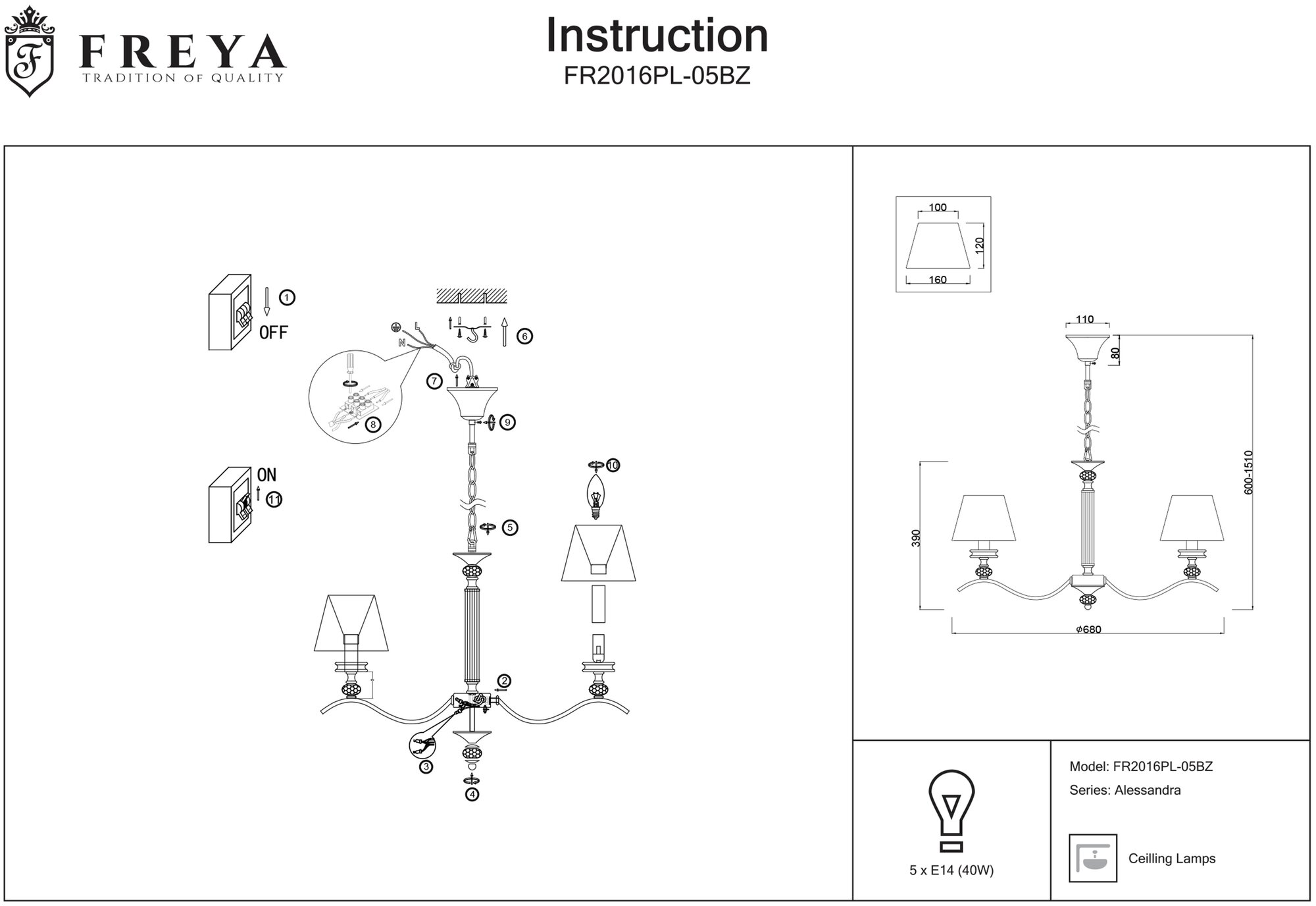 Подвесная люстра Alessandra FR2016PL-05BZ - продукт известной компании Freya (Германия). Имеет максимальную мощность 200 Вт, освещает площадь до 10 кв. м. Отлично подойдет для таких мест, как гостиная, кухня. Впишется в интерьеры следующих стилей: классический.