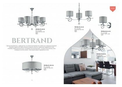 Светильников Bertrand – это выбор тех, кто не боится экспериментов и необычных интерьерных решений. В дизайне изделий этой серии сочетаются элементы классики с современными элементами. Например, сверкающие кристаллы и причудливо изогнутая арматура – это дань классическому стилю, а абажуры из хлопка в клетку – бесспорный элемент современного стиля.
