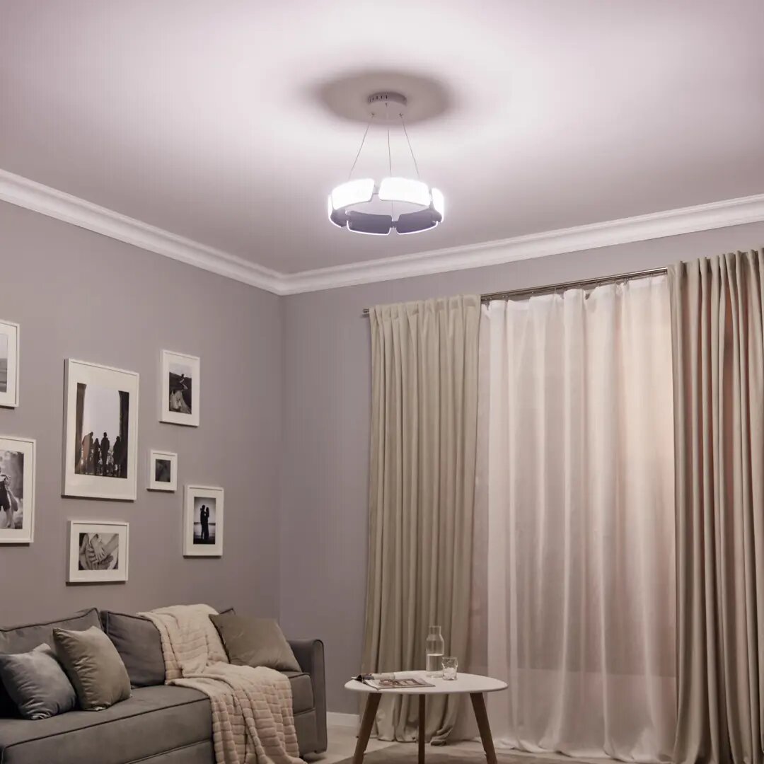 Образ светового диска или круга – древнего, пронизанного глубоким смыслом символа – вдохновил дизайнеров на создание этой серии. Светильники не только гармонично впишутся в современное пространство, но и заметно освежат его. Снежно-белая металлическая арматура и не менее освежающий матовый пластик образуют аскетичное единство. Надежные и мощные LED-источники скрыты под рассеивателем и дарят мягкий, равномерный яркий свет. Серия из трех люстр – двух потолочных и подвесной – решает проблему выбора светильника для комнат с высокими или низкими потолками. Идеальное решение для подсветки гостиной, спальни, кухни или прихожей.