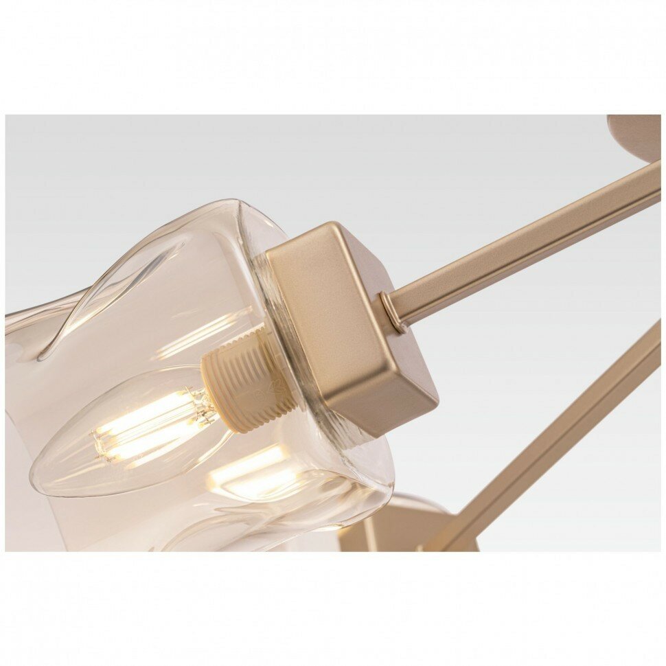 Серия Isabella – прекрасный вариант для современных интерьеров в теплой цветовой гамме. Арматура цвета матового золота выполнена из металла, а плафоны необычной формы – из янтарного стекла. Благодаря небольшой высоте потолочные светильники Isabella можно использовать в помещениях с невысокими потолками. Широкая линейка включает 3 потолочных светильника на 8, 6 и 4 рожка, а также бра.