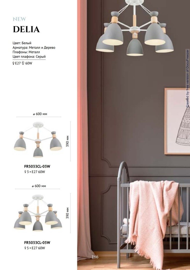 Потолочная люстра Delia FR5033CL-03W - продукт известной компании Freya (Германия). Имеет максимальную мощность 180 Вт, освещает площадь до 9 кв. м. Отлично подойдет для таких мест, как гостиная, кухня, кабинет, офис. Впишется в интерьеры следующих стилей: скандинавский.