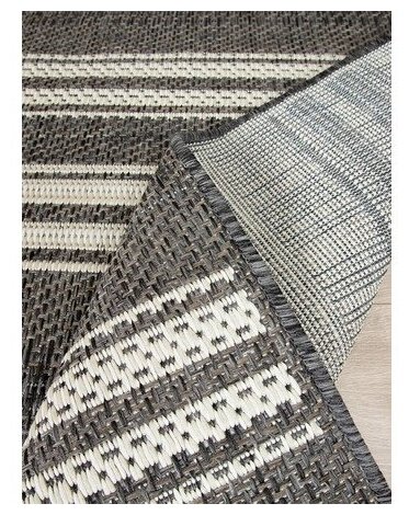 Комнатный ковер из 100 #37; полипропилена с плетением "циновка". Неброские цвета #40;серый, бежевый, коричневый, синий #41; и геометрические дизайны позволяют выбрать коврик для любого интерьера. Плотный безворсовый ковер #40;1050 г / кв.м. #41; не только украшение для дома, но и защита напольного покрытия от повреждений. Элегантный ковер без ворса - выбор многих покупателей. За счет использования в производстве скрученных нитей разной толщины и плотности, создается рисунок с рельефными линиями, достигается эффект микромассажа. Циновка подойдет в гостиную или спальню как прикроватный коврик, на балконе, на кухне, в коридоре, как коврик в прихожую.