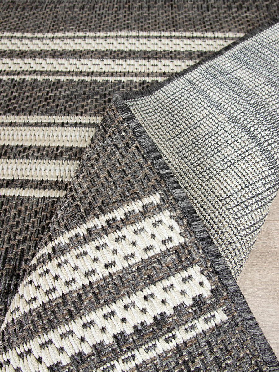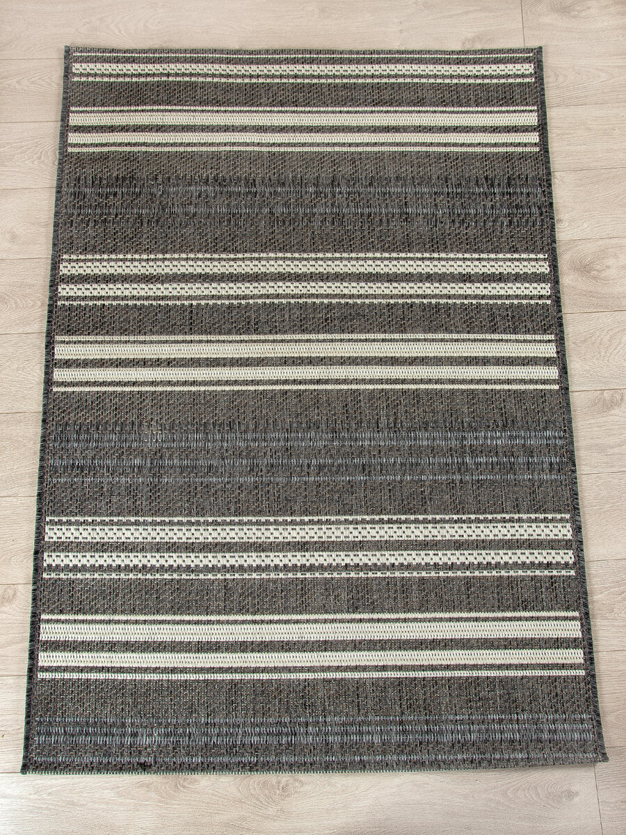 Комнатный ковер из 100 #37; полипропилена с плетением "циновка". Неброские цвета #40;серый, бежевый, коричневый, синий #41; и геометрические дизайны позволяют выбрать коврик для любого интерьера. Плотный безворсовый ковер #40;1050 г / кв.м. #41; не только украшение для дома, но и защита напольного покрытия от повреждений. Элегантный ковер без ворса - выбор многих покупателей. За счет использования в производстве скрученных нитей разной толщины и плотности, создается рисунок с рельефными линиями, достигается эффект микромассажа. Циновка подойдет в гостиную или спальню как прикроватный коврик, на балконе, на кухне, в коридоре, как коврик в прихожую.