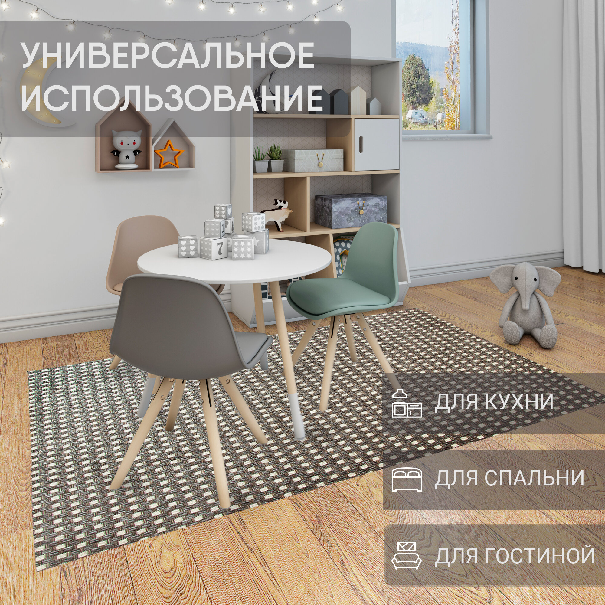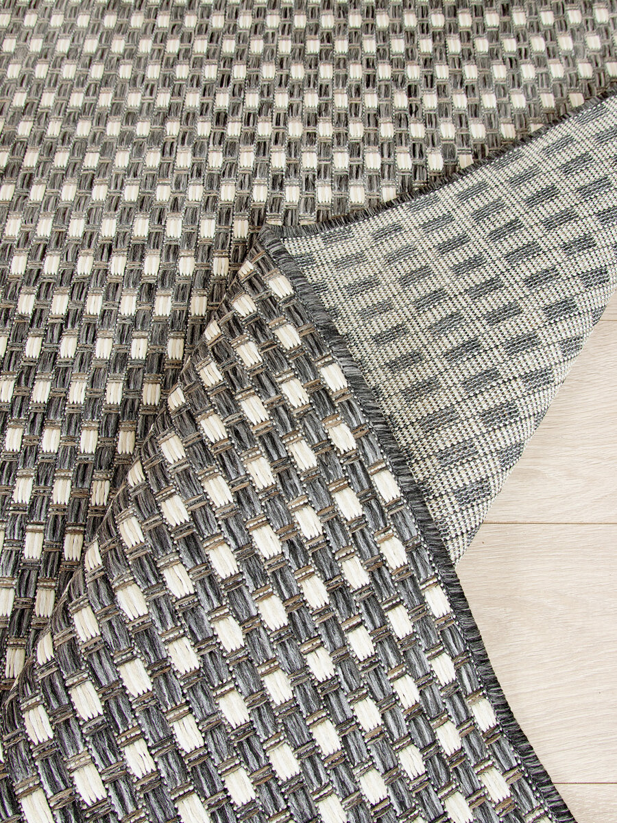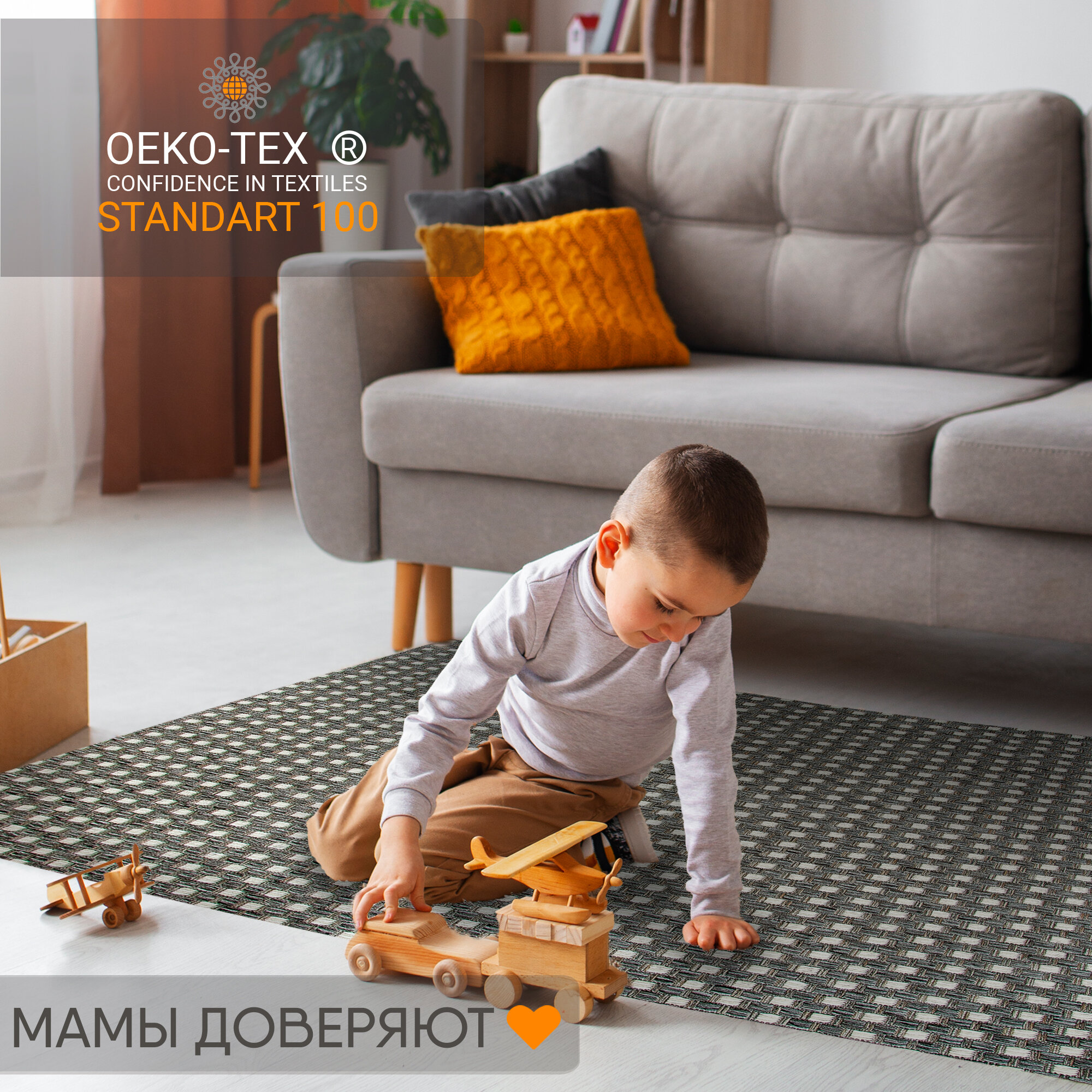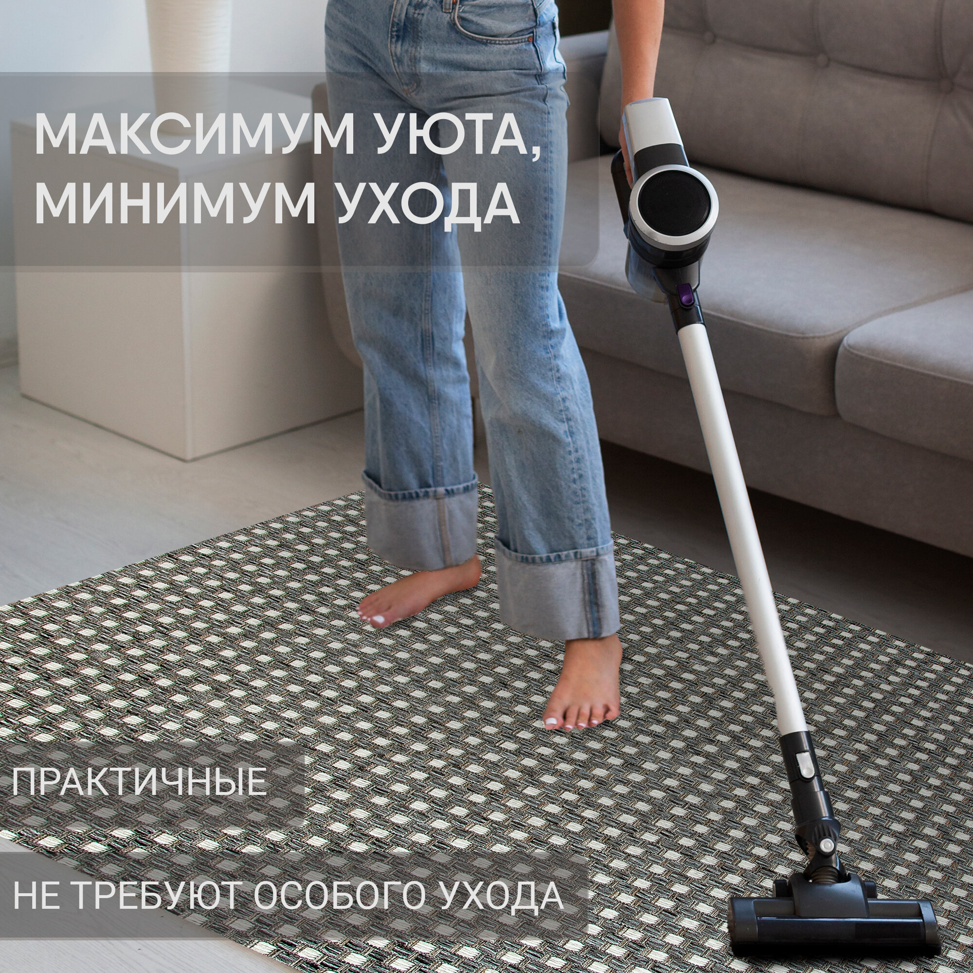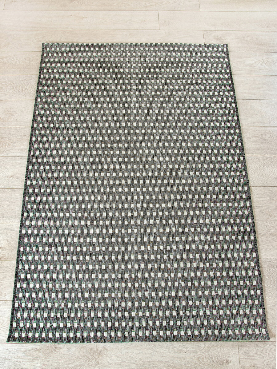 Комнатный ковер из 100 #37; полипропилена с плетением "циновка". Неброские цвета #40;серый, бежевый, коричневый, синий #41; и геометрические дизайны позволяют выбрать коврик для любого интерьера. Плотный безворсовый ковер #40;1050 г / кв.м. #41; не только украшение для дома, но и защита напольного покрытия от повреждений. Элегантный ковер без ворса - выбор многих покупателей. За счет использования в производстве скрученных нитей разной толщины и плотности, создается рисунок с рельефными линиями, достигается эффект микромассажа. Циновка подойдет в гостиную или спальню как прикроватный коврик, на балконе, на кухне, в коридоре, как коврик в прихожую.