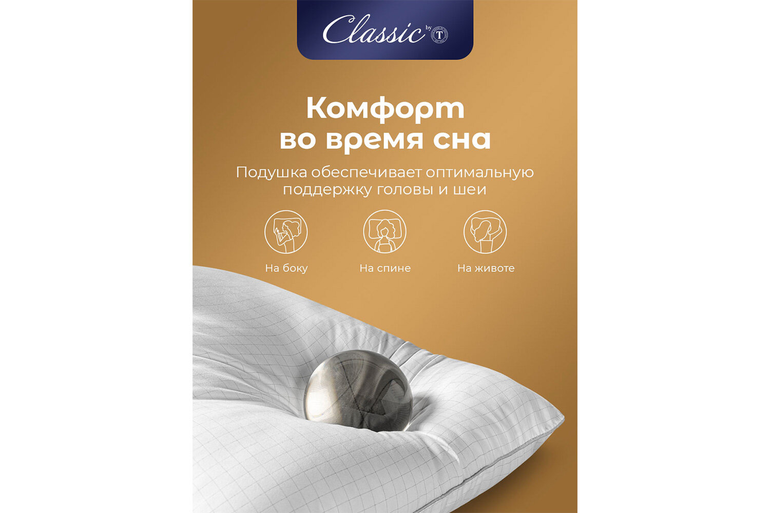 Сервис сравнения цен СкидкаГИД предлагает сравнить цены на товар «Подушка 70х70 лебяжий пух для сна анатомическая Сlassic by T Антистресс»