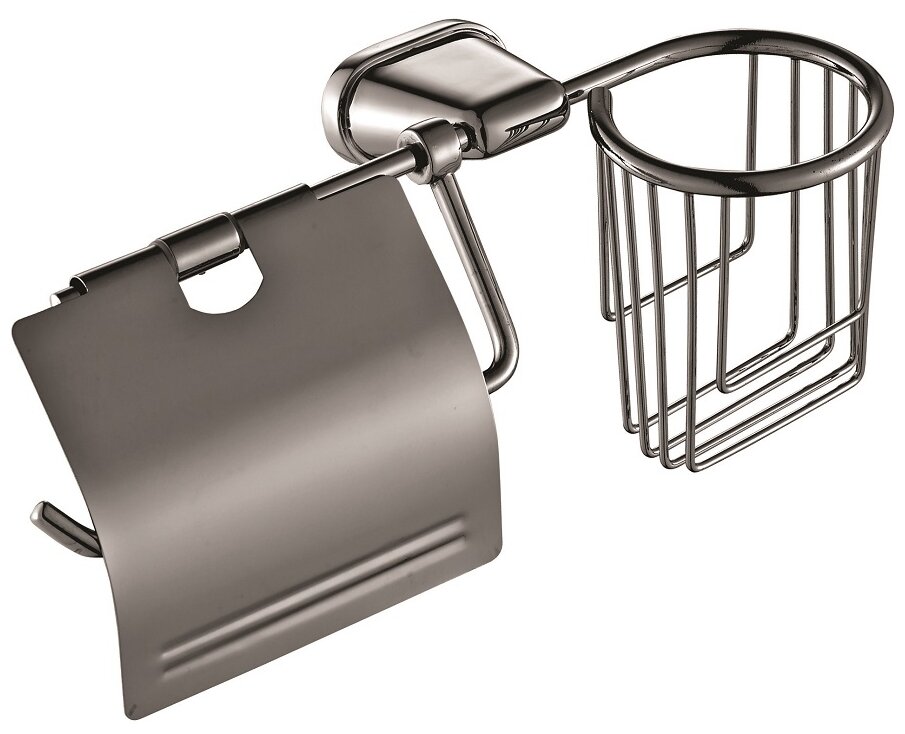 Настенный держатель для туалетной бумаги с корзиной, в прекрасном хромированном исполнении, станет неотъемлемой частью вашего интерьера. Крышка на держателе предусмотрена для защиты рулона от пыли и выполняет функцию зажима, накрывая рулон сверху и обеспечивая легкое отрывание бумаги нужной длины. Легко и надёжно крепится при помощи самореза и дюбеля, крепёж в комплекте. Размер: 13,5 x 26,8 x 11 см.