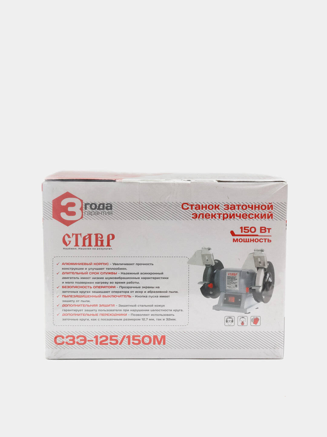 | Прочие особенности и свойства | Станок заточной электрический СТАВР СЗЭ-125/150М АЛЮМИНИЕВЫЙ КОРПУС:Увеличивает прочность конструкции и улучшает теплообмен. ДЛИТЕЛЬНЫЙ СРОК СЛУЖБЫ:Надежный асинхронный двигатель имеет низкие шумовибрационные характеристики и мало подвержен нагреву во время работы. БЕЗОПАСНОСТЬ ОПЕРАТОРА |