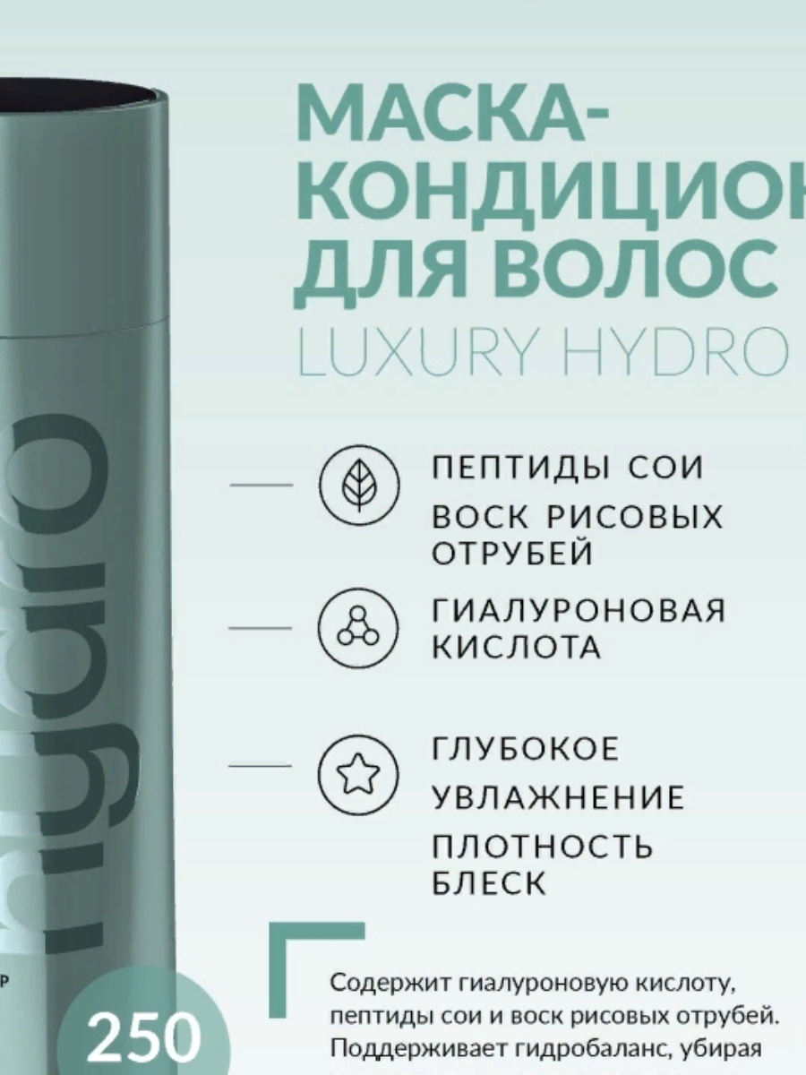 Маска обогащена запатентованной формулой с гиалуроновой кислотой, пептидами сои и воском рисовых отрубей. Дарит волосам глубокое увлажнение с эффектом пролонгации. Сохраняет цвет окрашенных волос.