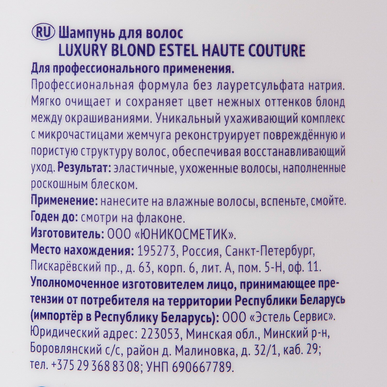 На сегодняшний день товар «Estel Шампунь для волос Haute Couture 1000 мл (Estel ) (ЭХ99989408324)» можно купить с кешбеком в 1 магазине: Яндекс.Маркет