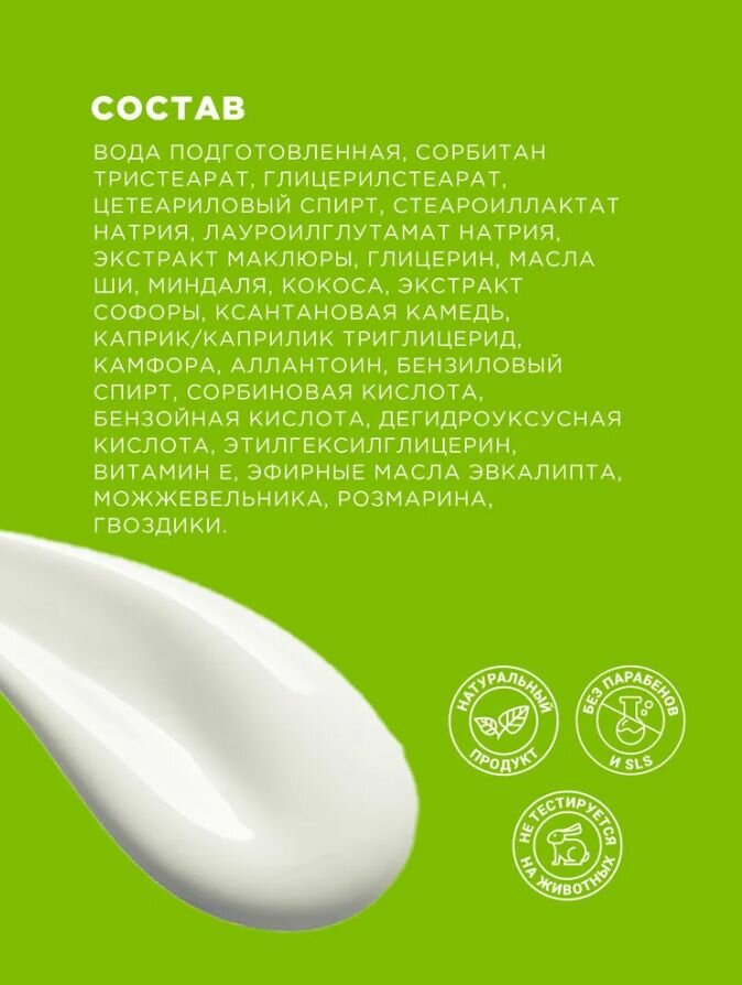 | Состав | Экстракты маклюры, софоры, эфирные масла розмарина, гвоздики, можжевельнка, эвкалипта, камфора. |