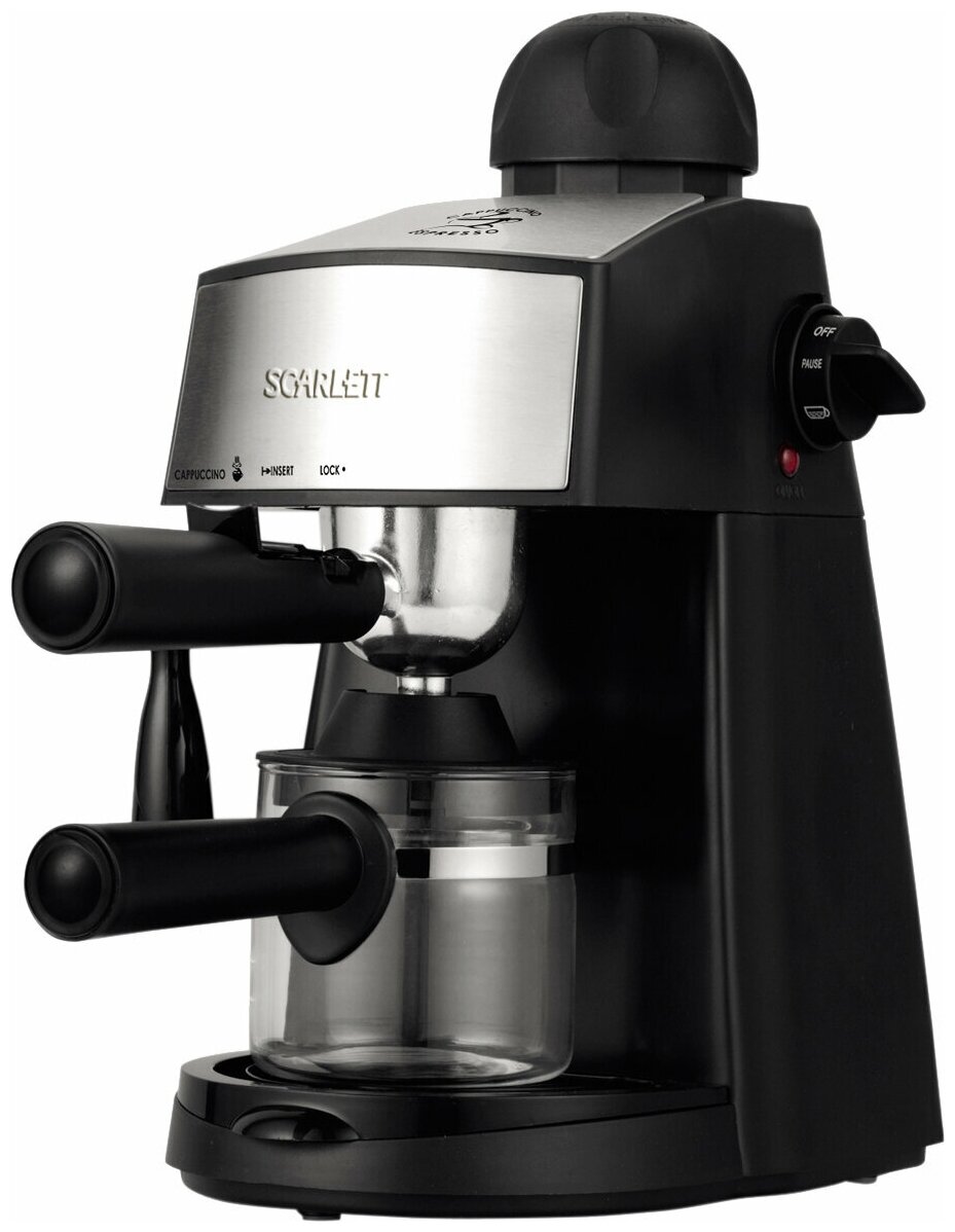 Современное устройство Scarlett предназначено для приготовления свежего ароматного кофе. Аппарат обладает двумя режимами работы – эспрессо и капучино, а при подаче пара на его поверхности появится ароматная воздушная пенка.