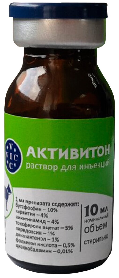 | Состав | АКТИВИТОН раствор для инъекций содержит в качестве действующих веществ бутафосфан, карнитин, никотинамид, токоферола ацетат, пиридоксин, декспантенол, фолиевую кислоту, цианокобаламин и вспомогательные вещества Выпускают расфасованным по 10 мл и 100 мл во флаконы из темного стекла. |