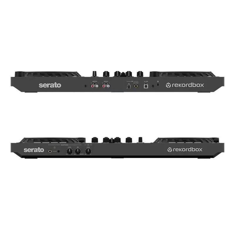 У каждого из них также есть дисплей On Jog Display, таким образом, вы можете отслеживать положение указателя воспроизведения. Также контроллер получил новый режим Sample Scratch. В секции микшера имеются 4 канала. Питание осуществляется от USB-шины. Благодаря встроенной звуковой карте подключается непосредственно к вашим громкоговорителям или к усилителю посредством одиночного USB-кабеля. Как обычно, контроллер имеет 8 резиновых пэдов на деку с фоновой подсветкой для запуска Hot Cues, Pad FX, Beat Jump и сэмплера.