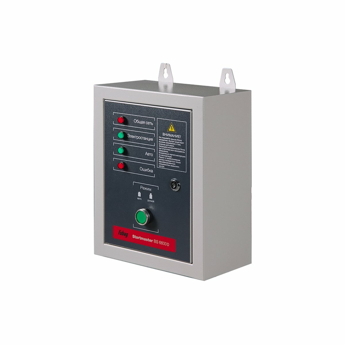 В ручном режиме, управление ведется оператором. В автоматическом режиме, блок непрерывно контролирует электрическую сеть на наличие напряжения. При критическом понижении или исчезновении которого блок запускает электростанцию в течение 5 сек. и останавливает, когда напряжение восстанавливается. Во время длительных простоев, блок автоматики Fubag поддерживает рабочий уровень заряда аккумулятора. Блок оснащен металлическим корпусом с ушками для крепления на стену.