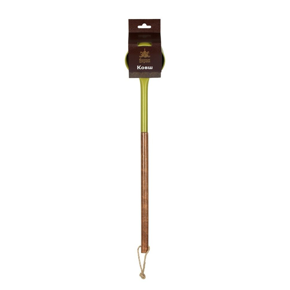 Ковш Банные Штучки – незаменимый атрибут для похода в баню или сауну. Используется для обливаний и для добавления воды или отвара трав на раскаленные камни. Изготовлен из алюминия, обладающего антикоррозийными свойствами. Оснащен удобной длиной деревянной ручкой, предохраняющей руки от ожогов паром. Есть петелька для подвешивания на крючок.