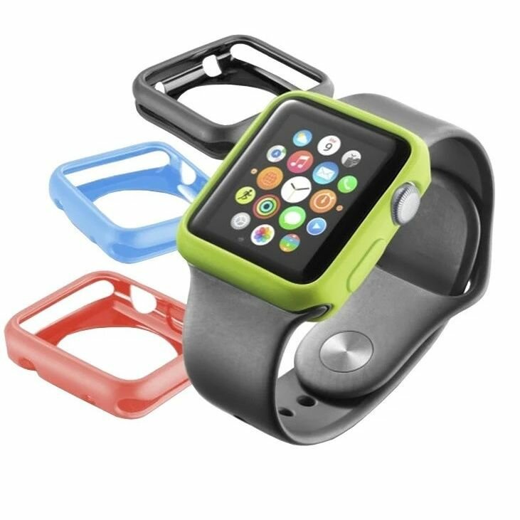 Набор клип-кейсов Cellular Line для Apple Watch 4 в 1 состоит из четырех разноцветных чехлов. Кроме них в комплект поставки входит защитная пленка, которая предотвращает повреждение дисплея, но не искажает изображение на нем.· Качественный материал. Аксессуары изготовлены из эластичного силикона. Этот материал выдерживает большие нагрузки и поглощает энергию ударов. Он защищает "умные" часы от повреждений при падениях и контактах с острыми предметами.· Полный доступ. Чехлы не мешают пользоваться биометрическими датчиками, клавишей и колесиком настройки. В их поверхности предусмотрены специальные вырезы для каждого функционального элемента.· Удобство использования. Особое крепление аксессуара позволяет устанавливать его за считанные секунды, не используя никаких инструментов.
