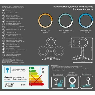 Кольцевая лампа Gauss RL001