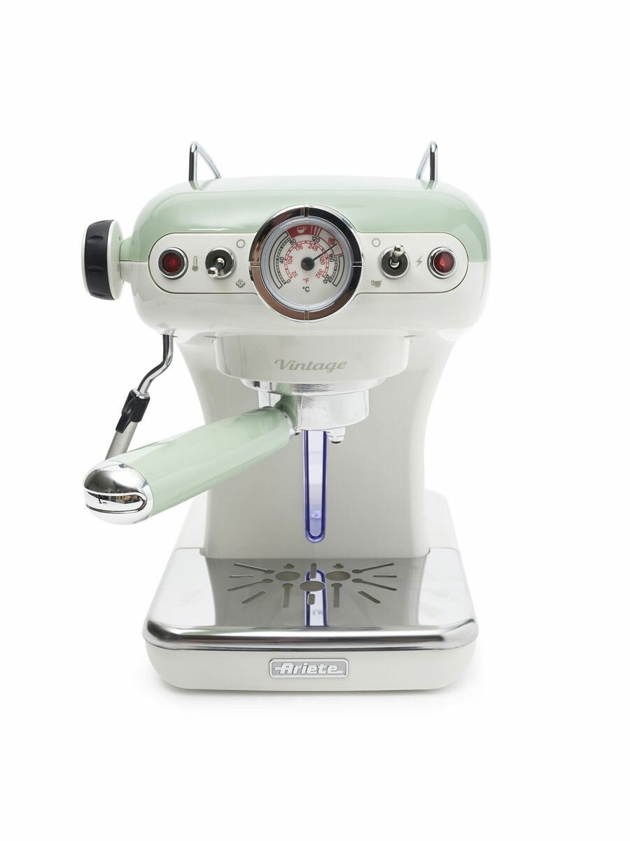 Ariete это кофемашина для кофе эспрессо, выполненная в элегантном и изысканном винтажном стиле, украшенная красивыми деталями пастельных тонов с металлической отделкой. Мощность 900 Вт, давление пара 15 бар, фильтродержатель для чалд и порошка кофе (на 1 и 2 чашки), съемные поднос и резервуар для воды предоставляют возможность дома насладиться кофе и капучино с густым и насыщенным вкусом, как в баре.