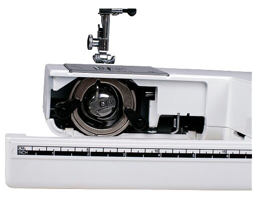 Для качественной работы с тонкими и тянущимися материалами в электромеханической швейной машине Janome предусмотрена возможность регулировки давление лапки на ткань. Для узких и круговых изделий имеется функция «свободный рукав». Для регулировки скорости шитья используется педаль.