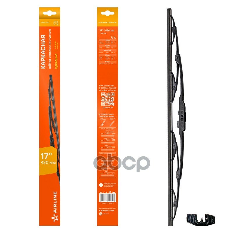 Внимание ! Цена указывается за 1 единицу товара!Вы Смотрите :Номер товара : AWBK430 Производитель : AIRLINE Название товара : Щетка стеклоочистителя каркасная 430мм (17) 1 адаптер Доступно для заказа : 0 Минимальное количество для заказа : 1 - заказывать кратно данному числу !Внимание!Делаем отправку заказа максимум через 2 дня после заказа, в зависимости от дня недели.Цена указана за 1шт, если указывается кол-во в лоте 10, то нужно заказывать 10шт, по 1шт данный товар не отправляемНапример:Cвечи продаются по 4шт(6,8,12) минимум и кратно 4шт(6,8,12)Втулки стабилизатора (которые одинаковые) по 2шт минимум и кратно 2шт, за исключением когда втулка идет на одну из сторон, то есть правая или левая!Пружины продаются по 2шт!