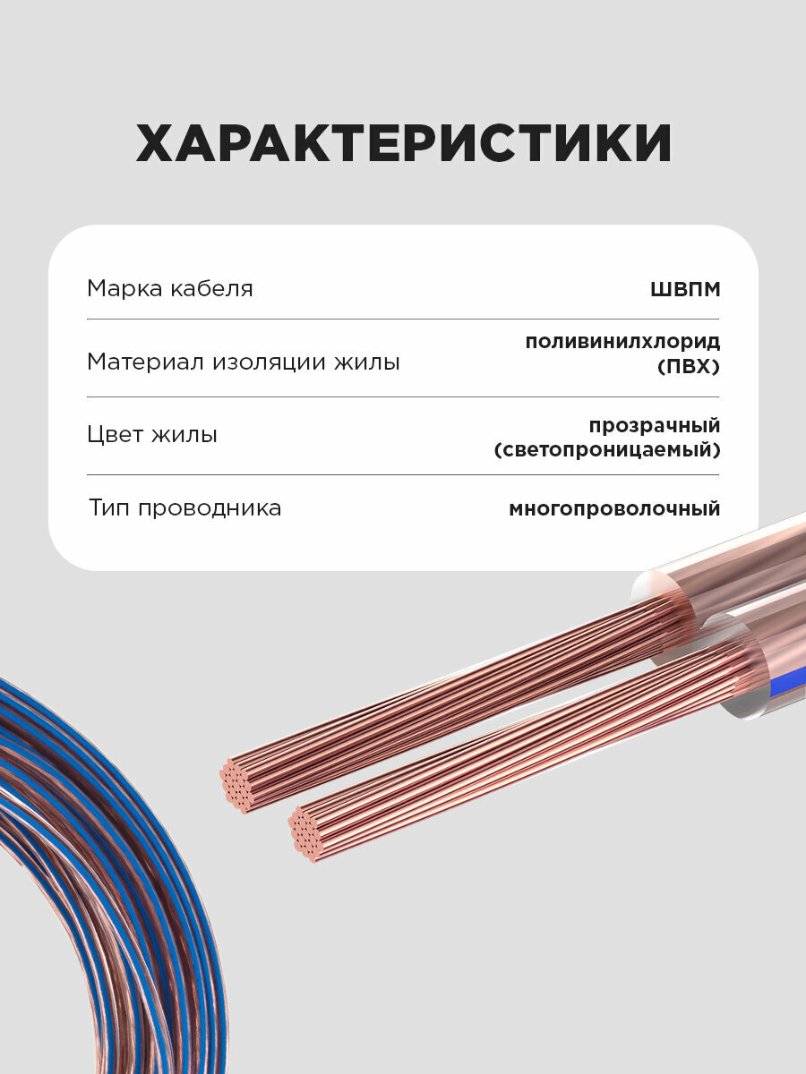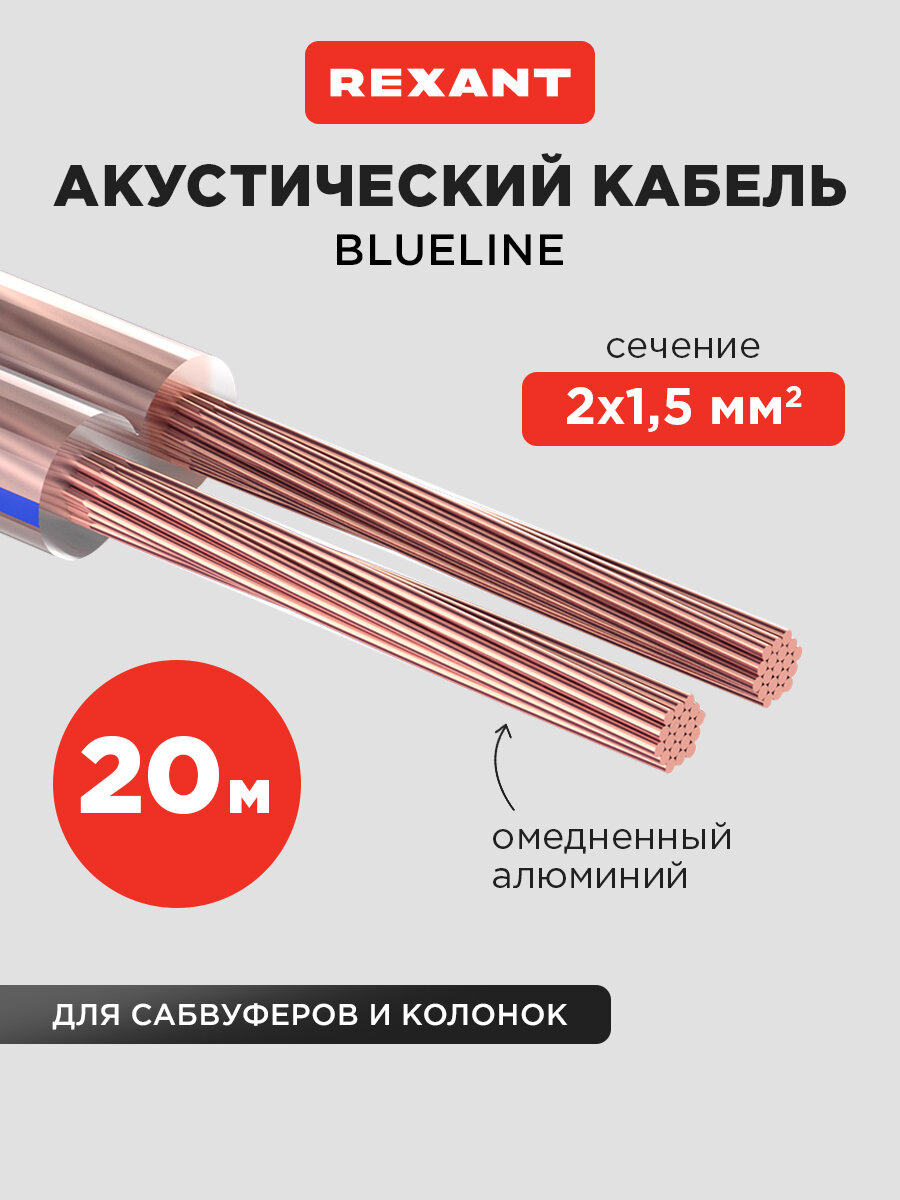 Акустический кабель 2х0,75 мм² Blue Line REXANT произведено из 2-ух параллельных многожильных проводников в изоляции из иллюзорного поливинилхлоридного пластиката. Разделительное базу разрешает гарантировать деление проводников кабеля без повреждения изоляции и оголения жил. Длина кабеля 20 метров.