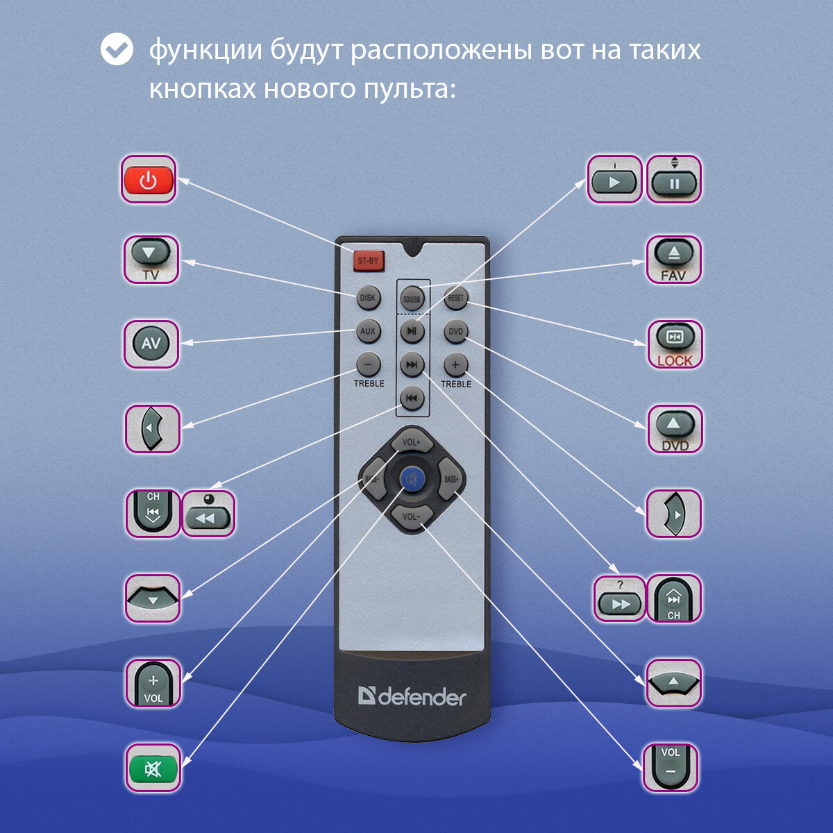 DEFENDER SIROCCO X65PRO – акустическая система формата 2.1 со встроенным MP3-плеером и полнофункциональным пультом дистанционного управления. Стереогарнтитура HN-750 разработана специально для любителей смотреть телевизор в наушниках. Можно сесть в кресло или с удобством расположиться на диване - кабель гарнитуры составляет 2 метра. Когда гарнитура будет использоваться для общения в Интернете, можно свободно передвигаться по комнате, не прерывая разговор.