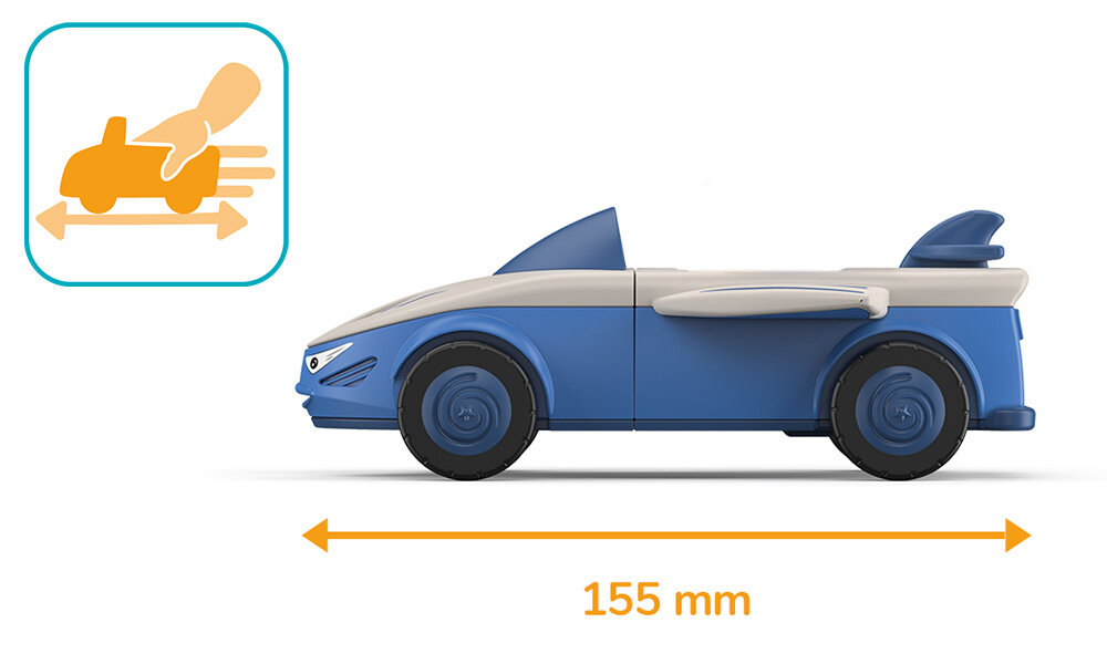 Набор состоит из машинки из двух деталей и фигурки водителя.