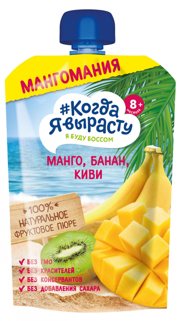 Пюре Когда Я вырасту Яблоко манго банан киви пауч 180гр (8606019653477)